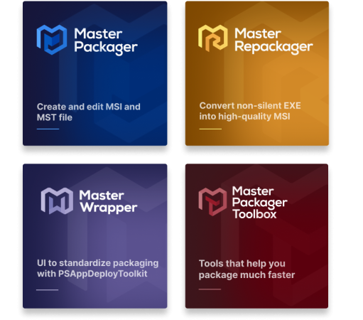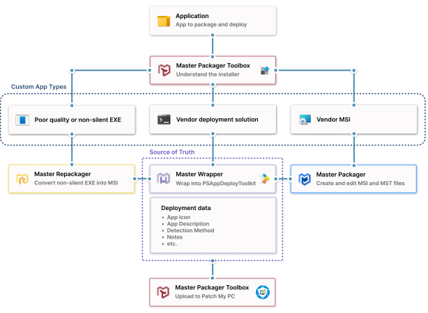 For internally developed apps, or those requiring heavy customization or complex packaging, Master Packager Suite and PSADT have your back.