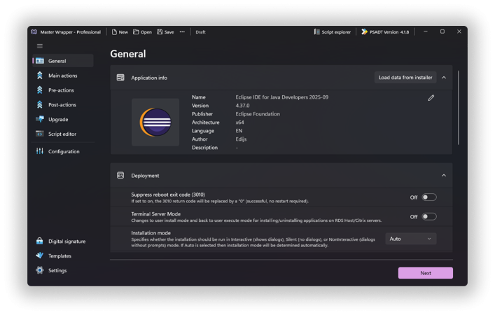 The user interface guides packagers through the entire PSADT wrapping process while automating any tedious tasks.