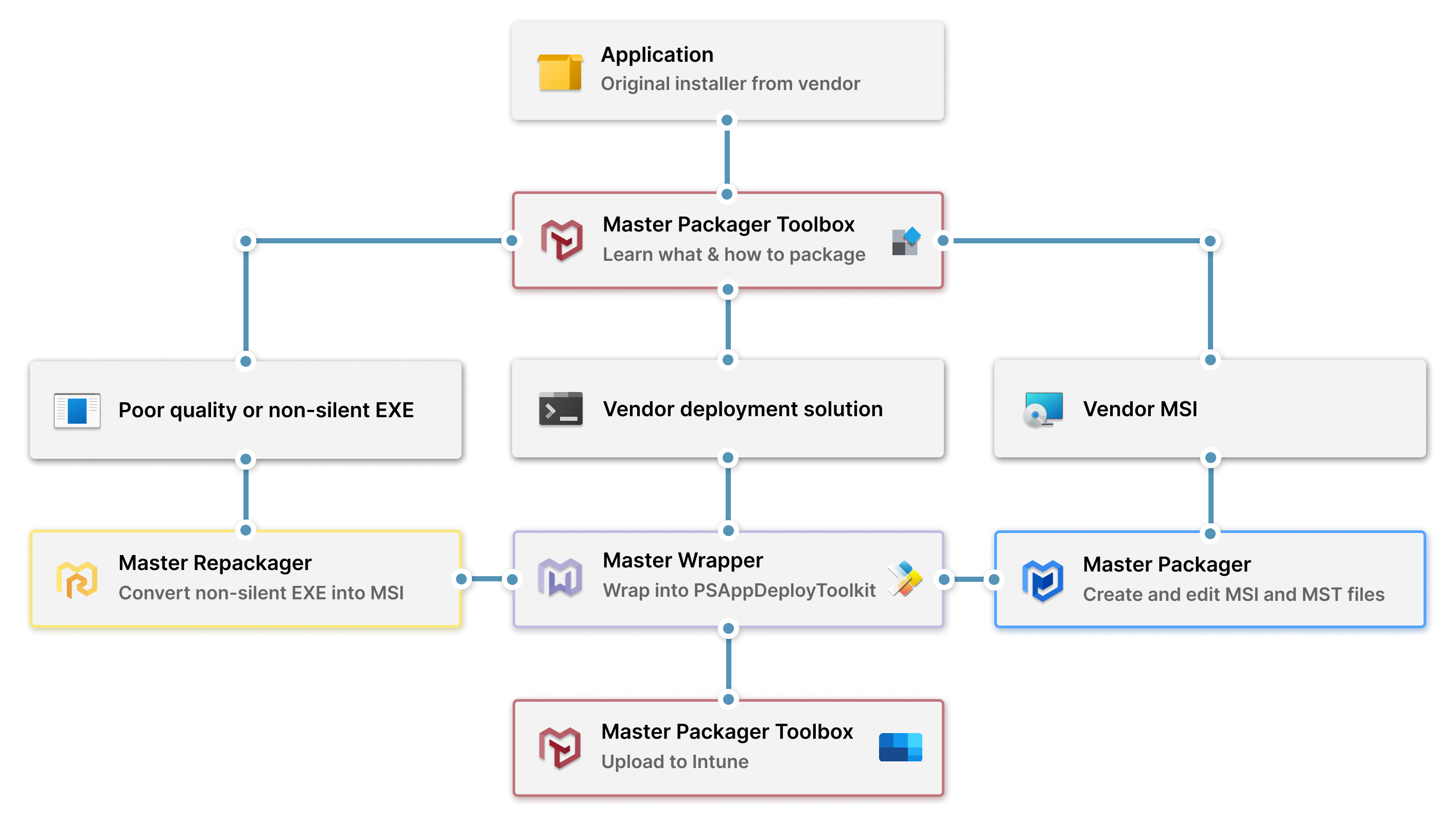 Standardize and improve installation experience for your end-users by wrapping packages into PSAppDeployToolkit. Master Wrapper is the UI for PSADT. With Master Wrapper beginner app packagers will become Master Packagers and pro PSADT users will get much faster when building our PSADT scripts.