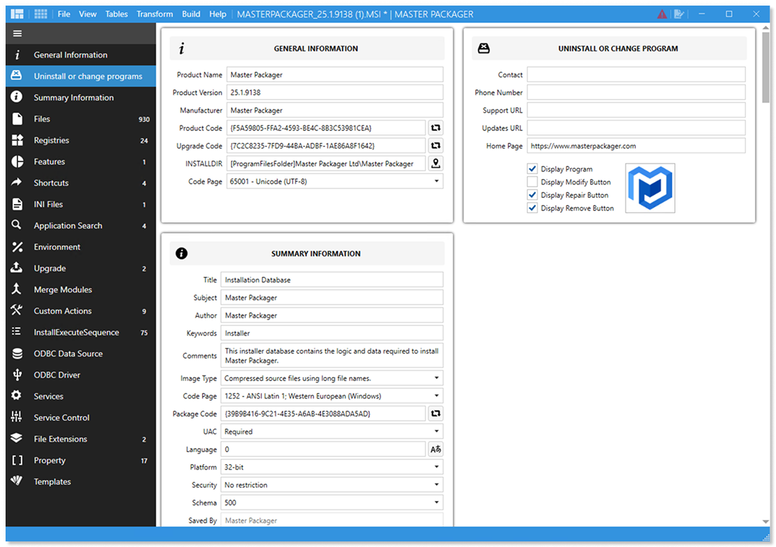 Create MSI and MST files from scratch or modify Vendor Microsoft Windows installers.