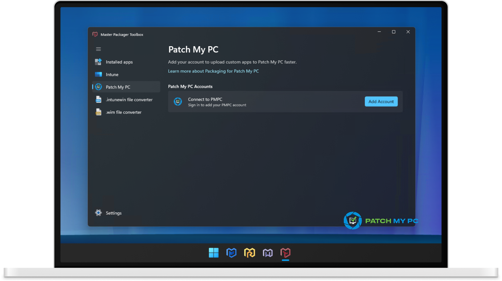 - Master Packager Toolbox Upload custom apps to Patch My PC.