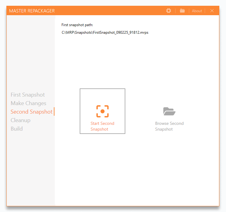 Continue by scanning your machine a second time. After that Master Repackager will compare the first snapshot with the second. File and registry difference between snapshots is what you are after.