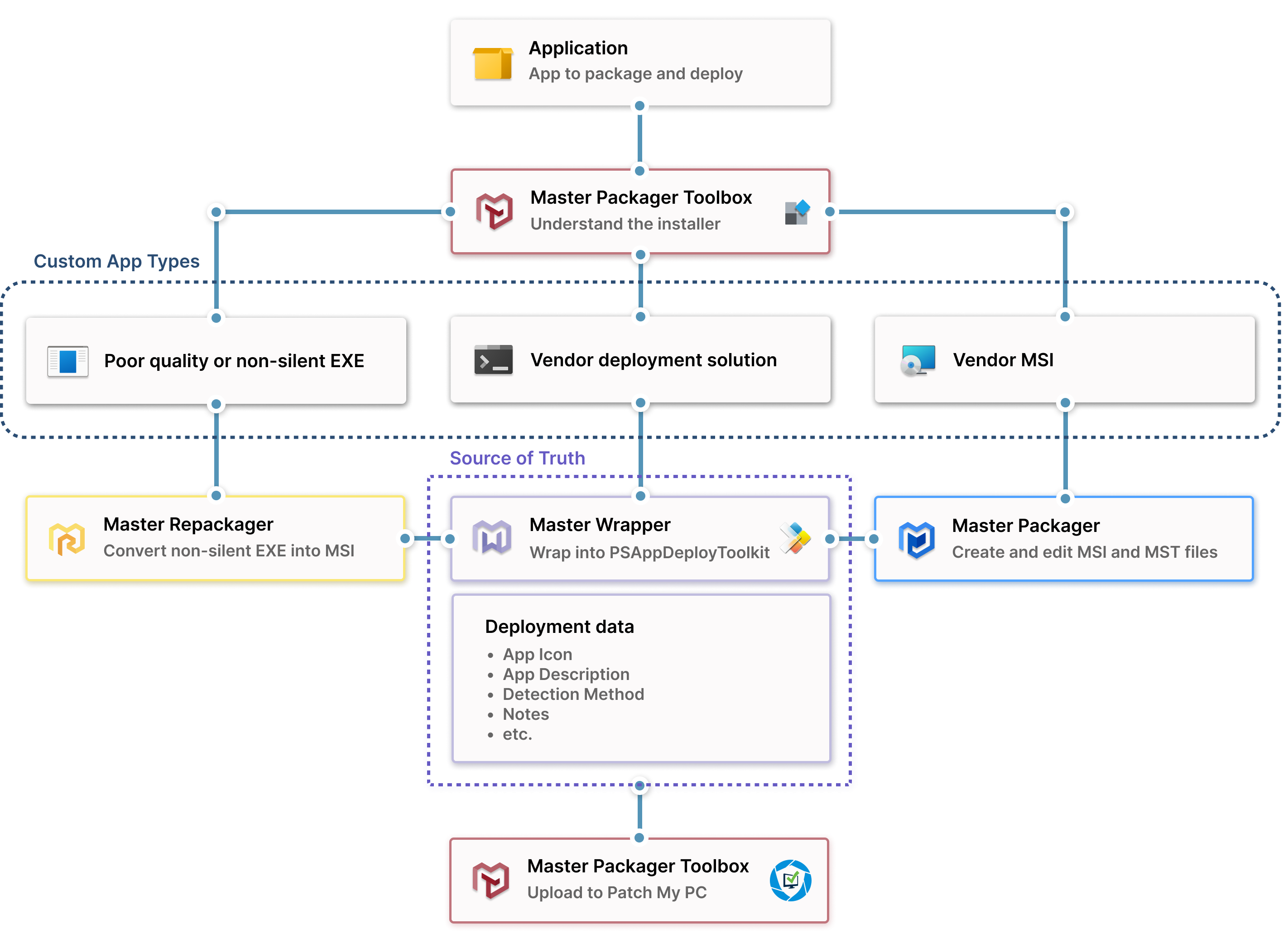 For internally developed apps, or those requiring heavy customization or complex packaging, Master Packager Suite and PSADT have your back.