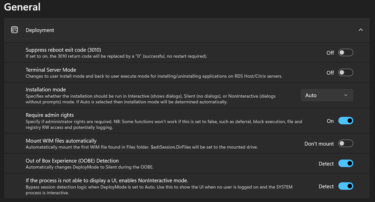 - Out of Box Experience (OOBE) Detection – Automatically changes DeployMode to Silent during the OOBE.
