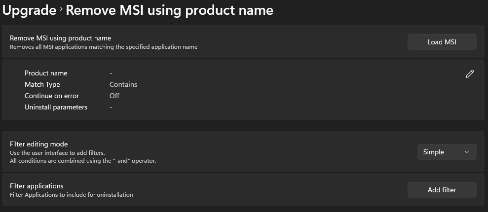 - Continue on error – When enabled, the upgrade process continues even if the removal fails.