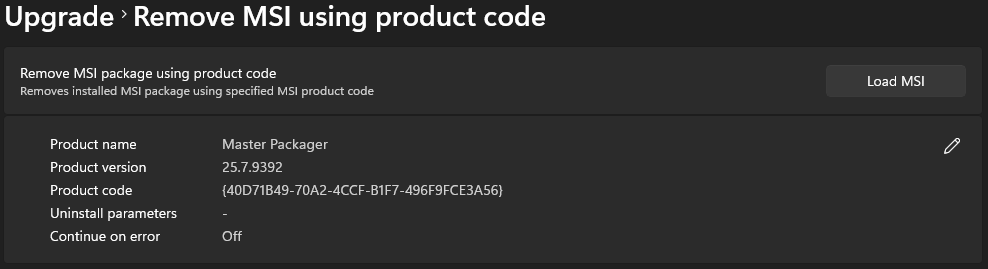 - Load a previous version of MSI to automatically fill out upgrade data, making the workflow easier.
